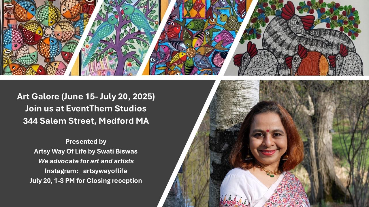 Join us for the Closing Reception of Art Galore, a vibrant exhibition of traditional Indian folk art curated by Swati Biswas, founder of Artsy Way of Life. This special event will feature a live performance of traditional Indian dance by Biswas, whose artistic practice blends movement, storytelling, and visual culture. 🎨