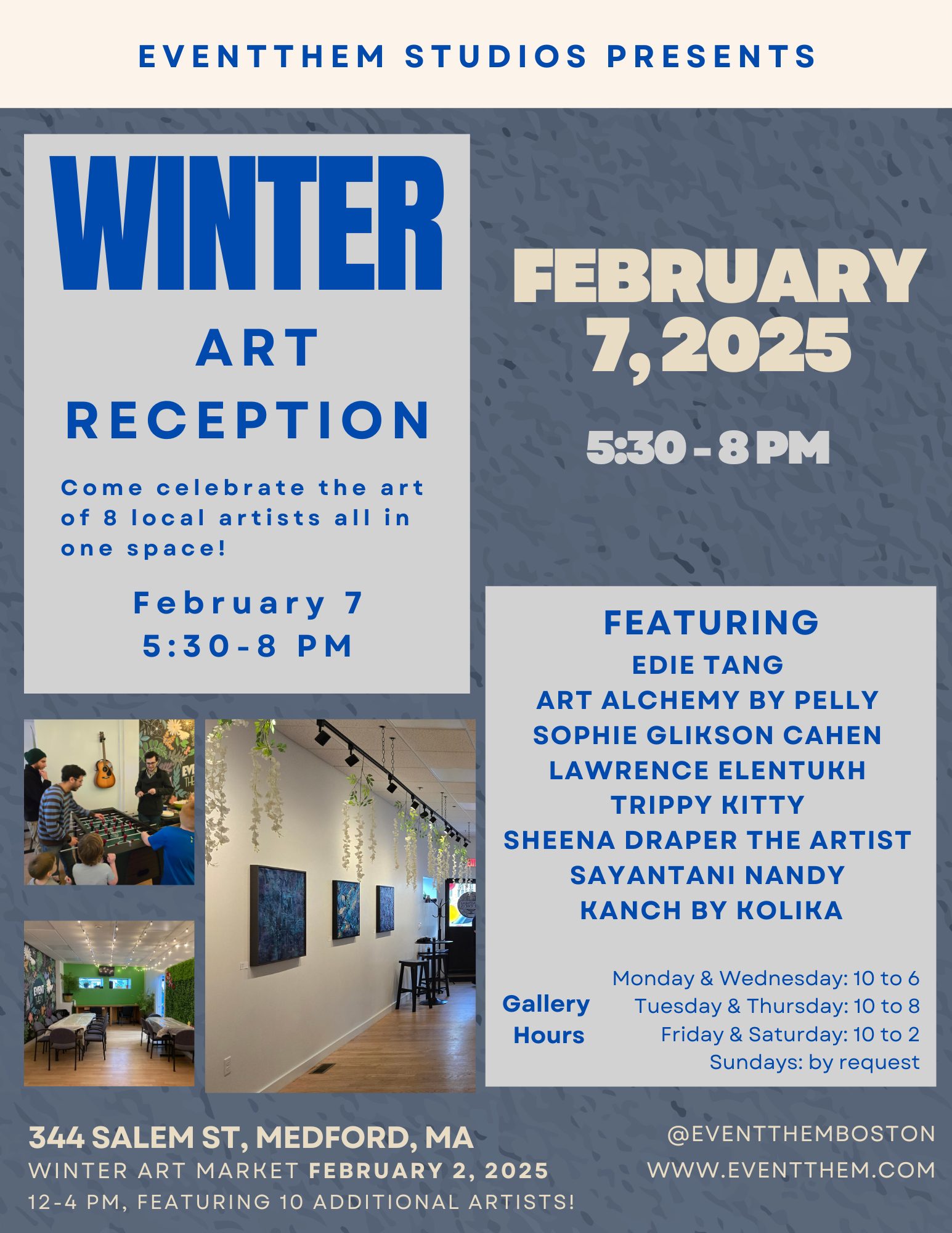 📍 Location: EventThem Studios, 344 Salem Street, Medford, MA